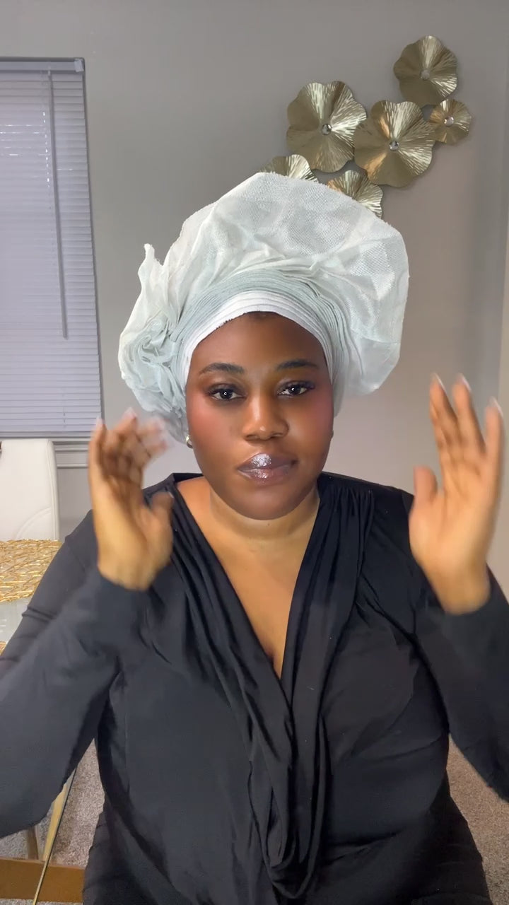 Pre-made white Aso oke Headtie / Auto gele